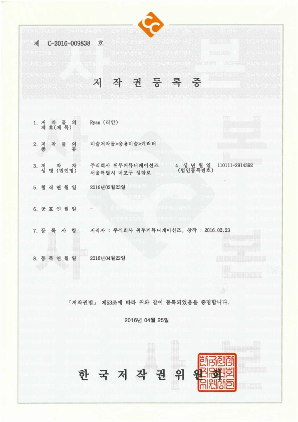 [한국/저작권] 리안 페이지 정보 작성자 WeDu 댓글 0건 조회 4,946회 작성일 19-05-30 19:08 본문 2016-04-22 저작권 C-2016-009838 리안 / 미술저작물>응용미술>캐릭터 List Previous[한국/저작권] 아리스 19.05.30 Next[한국/저작권] 나무트 19.05.30