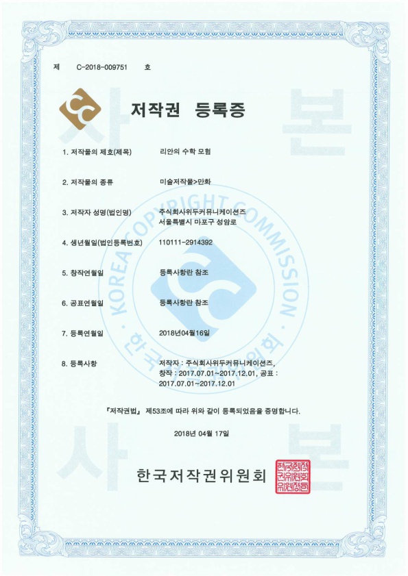 [한국/저작권] 리안의 수학 모험 페이지 정보 작성자 WeDu 댓글 0건 조회 4,961회 작성일 19-05-30 19:07 본문 2018-04-16 저작권 C-2018-009751 리안의 수학 모험 / 미술저작물>만화 List Previous[한국/저작권] 길리 19.05.30 Next[한국/저작권] 신입사원조기전력화 이러닝 콘텐츠 19.05.30